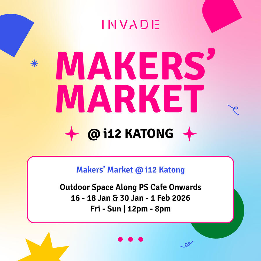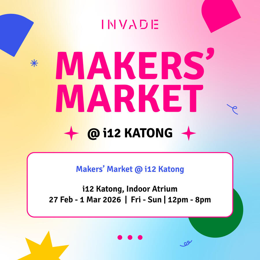 Create, Connect & Showcase at i12 KatongLocated in the colourful Katong–Joo Chiat enclave, Makers’ Market is popping up inside the atrium of i12 Katong! Whether you’re showcasing new art or cultural inspirations, come connect with like-minded creatives and share your work. Join us and let your creativity unfold!Opening Hours: