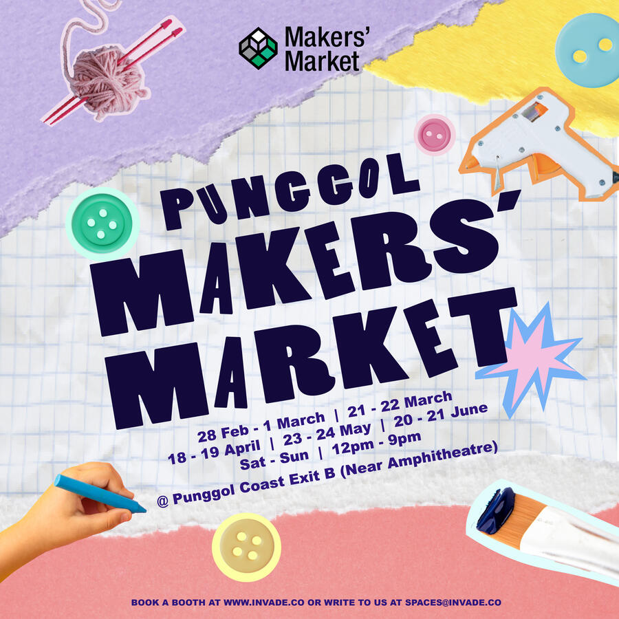A Celebration Of Handmade Crafts & Artisanal Goods!Set in a vibrant outdoor space beside PLQ Mall and situated right in-front of Paya Lebar MRT, you'll have the chance to showcase your one-of-a-kind creations. Don't miss this opportunity to connect with fellow makers and make your mark in the crafting community!Opening Hours: